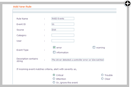 - Configurez les règles de surveillance des syslogs et soyez informé des événements du système (journaux d'événements Windows ou syslog) pour les problèmes de ressources. Par exemple, un événement système pour une panne de RAID.
